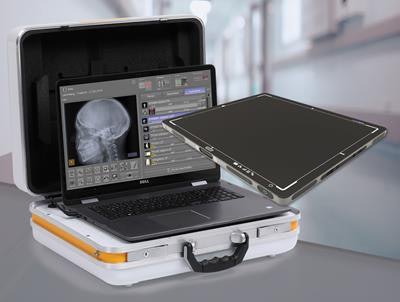 Leonardo DR mini. Image courtesy of OR Technology.The wireless x-ray unit fits entirely inside a 17-inch laptop case and weighs 8.9 kg. It uses OR Technology's acquisition software DicomPACS DX-R for its on-the-go radiography, according to the company.
