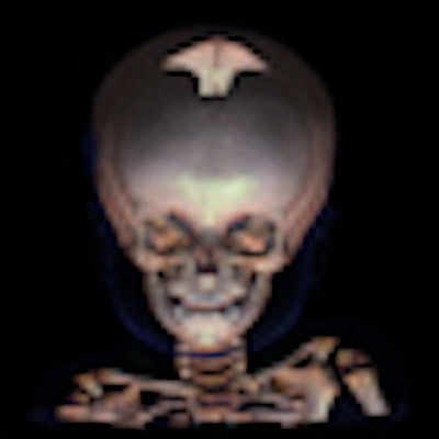 Virtual autopsies can play a role in cases of suspected child abuse. In this image, volume-rendered cranial postmortem CT data suggested an atlanto-axial rotatory subluxation. Note the position of the right lateral mass of the first cervical vertebra compared with the column of right lateral masses of the lower vertebras. This is a nonaccidental finding in many postmortem CT examinations. All images courtesy of Dr. Anders Persson, PhD, Center for Medical Image Science and Visualization, Linköpings Universitet, Sweden.Despite this high interest, administrative, legal, and financial obstacles have delayed adoption in France. The government recognizes a virtual autopsy as a medical act and has defined pivotal centers that are reimbursed for the exam, yet the question of who is paid for what services remains open because the reimbursement is received by the hospital and not the practicing radiologist, noted Dr. Bernard Proust, from the Centre Hospitalier Universitaire de Rouen (CHU-Rouen) in France.